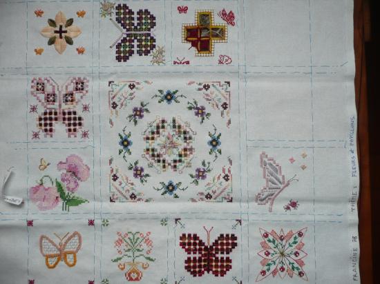 j'ai reçu ma toile brodée par 10 brodeuses du forum.